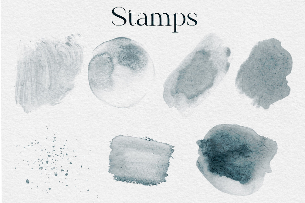 7 stamps that work well as background layers or added to your work on a mask layer for differing depths of colour and water marks.