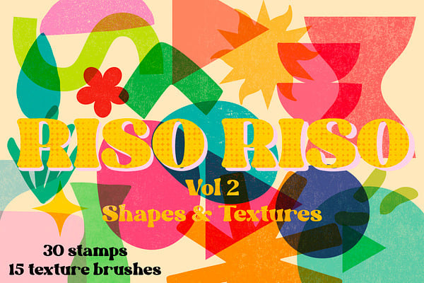 Create effortless risograph style art with these stamps and texture brushes.